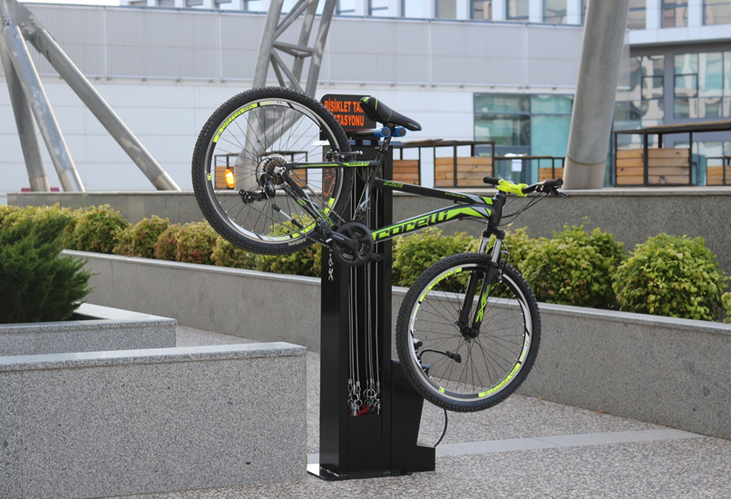 BİSTEK Bisiklet Tamir İstasyonu, bisiklet kullanıcılarının kendi onarımlarını güvenle ve kolayca yapabilmesi için tasarlanmış, dış ortama dayanıklı profesyonel bakım ünitesidir.